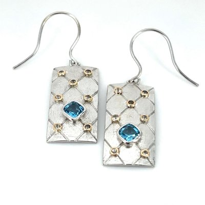 Dela Collection: SS/14k Gold Inlay Custom Earrings Blue Topaz Sapph...